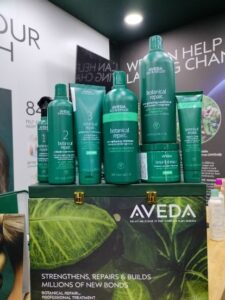 - Aveda drew significant attention with its signature green booth and a product display organized by brand evolution, while the Botanical Repair range was prominently featured throughout the event.