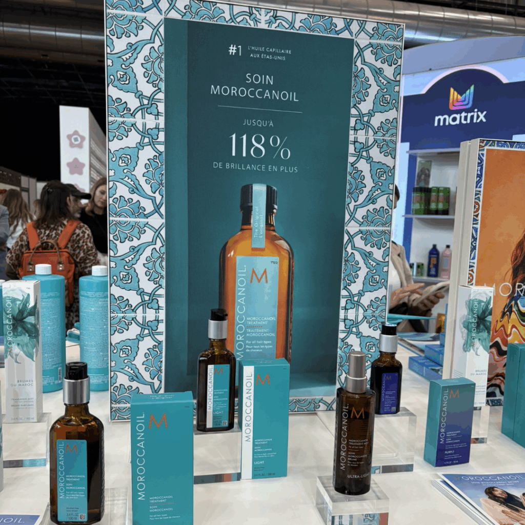 Coiffidis made a noticeable comeback. Its list of distributed brands (Moroccanoil, Les Secrets de Loly, Matrix, Lashilé, Olaplex, Phytodess, Pro You) was more visible than ever, with Moroccanoil and its coloring lines particularly emphasized.